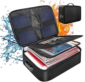 Protect Your Valuables with a Fireproof and Waterproof Document Bag. Discover fireproof document boxes designed to withstand high temperatures and water damage. Find options with organizational features and locking mechanisms Box File 10 Best Fireproof Document Boxes For Safeguarding Passports Certificates And Valuables Tamfile Vs Other Brands - July 2025 Fire Proof Documents Bag Fireproof Document Bag Large File Storage Box Waterproof Fireproof Bag with Lock Storage for A4 Documents and Cash (36 x 27 x 10 cm - Silver YIWONFU Large Capacity Fireproof & Waterproof Document Bag(38x28x10cm/15x11x4in)with Combination Lock, Safe Lockable Storage Box for Valuables Super large capacity attribute: ★★★★★ *First layer (4X passport mesh pocket)max hold up to 12 passports *Second-front (12x card slot layer + 4x USB flash drive layer + 2x A4 paper space layer) Second-back (1x zippered mesh partition) *Third-front (3x staggered layer storage pockets) Third-back (1x mesh storage partition) *Fourth layer (extra-large main storage space) Fireproof attribute: ★★★★★ *The first- double layer Silicone coating - The polymer structure of silicone can form a dense barrier, effectively blocking moisture penetration / thermal stability, can form a protective layer at high temperatures *The second- double-layer glass fiber layer - natural high temperature resistance and flame retardancy, its melting point is as high as 1000°C *The third- double-layer aluminum foil - reflects heat radiation (up to 93%), reduces heat transfer into the bag, and plays an auxiliary role in heat insulation Waterproof properties: ★★★★★ *The first- silicone coated glass fiber cloth - dense barrier, 100% blocking moisture penetration *The second- built-in aluminum foil layer - completely sealed, no pores, epoxy coating, pure aluminum layer and tensile protective oil layer, these coatings work together to provide waterproof and moisture-proof performance *The third- the fabric is PVC coated to achieve IPX5 and above waterproof level Safety attributes: ★★★★★ Equipped with a password lock, which can combine 1000 passwords to prevent unauthorized access (initial password 000, turn the number when the password lock is pushed in, and the password can be changed) [Fireproof/Waterproof] The documents storage box can withstand high temperatures up to 2500°F (1200°C) for up to 30 minutes, with a built-in layer of natural dense barrier to 100% block moisture penetration Protect Your Valuables with a Fireproof and Waterproof Document Bag. Designed by Firefighters, this Storage Safe is Extra Strength and Convenient for Quick Evacuation. Great Gift Option for any Occasion. Shop at Ubuy [Large Capacity] Fire safe bag(38x28x10cm/15x11x4in), 4 layers of storage space - first(4x passport mesh pockets); second front (12x card slot layer+ 4x USB disk layer+ 2x A4 paper space layer), second back (1x zippered mesh compartment); third front (3x staggered layer storage pockets), third back (1x mesh storage compartment); fourth layer (extra-large main storage space)Product Information