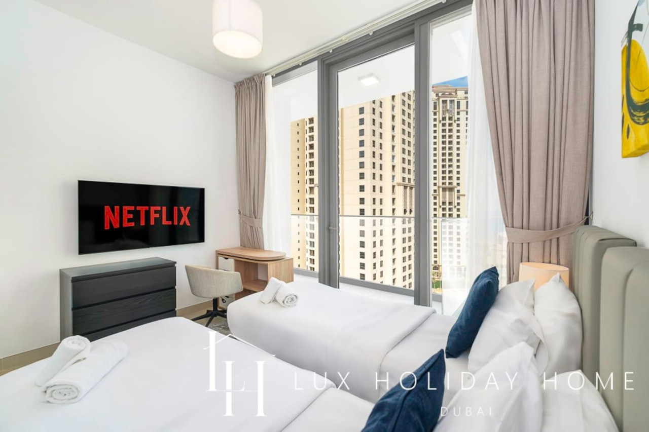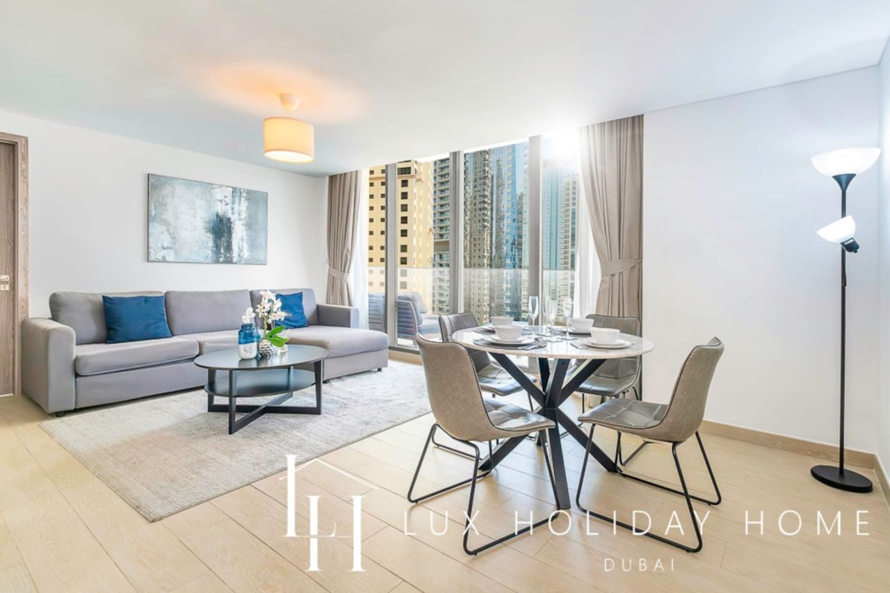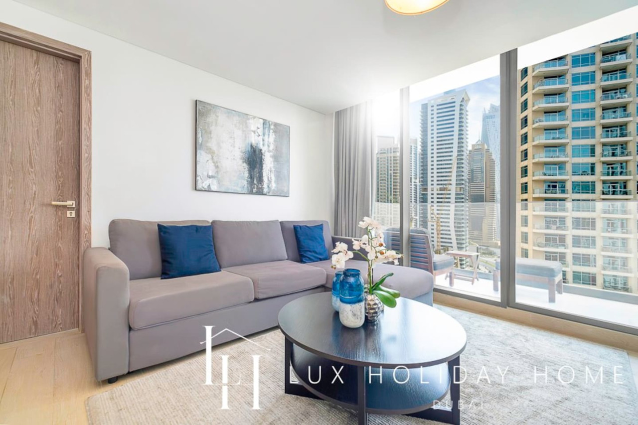 Welcome to LUX | Contemporary Suite with Marina View 6! This NEW apartment is one of a kind with its luxury furnishings, 2 large balconies, a free gym, and an infinity pool overlooking the Dubai marina. Dubai Marina is Centrally located with direct access to Marina Walk, a short 15 mins walk to Jumeirah Beach and Marina Mall. A cafe, pharmacy, grocery store, and barbers are all on your doorstep. - Two Bedrooms with Ensuite - Living room with Dining Area - Flat screen smart TV with Netflix - Guest Bathroom - Fully equipped Kitchen - Private Terrace - Shared Gym - Newly renovated infinity pool available, overlooking Dubai Marina - Shared BBQ Area - Kids playing Area - Private allocated Parking - Free Parking onsite - Careem Rental Bikes onsite - Taxis Available on your doorstep 24/7 - Direct walking access 7km of the landscaped walkway with an array of restaurants, malls, coffee shops, bars Dubai Marina is an affluent residential neighborhood known for The Beach at JBR, a leisure complex with al fresco dining and sandy stretches to relax on. Smart cafes and pop-up craft markets line waterside promenade Dubai Marina Walk, while Dubai Marina Mall is packed with chain and luxury fashion brands. Upscale yachts cruise through the large man-made marina, where activities range from jet-skiing to skydiving. TOP 10 Dubai Marina Must Do's! Yacht Tour with Breakfast or BBQ 1. Embark on a cruise around Dubai to see its highlights from the water. Sail 2. Marina Dinner Cruise with Drinks & Live Music 3. Dubai: City Highlights from Above Helicopter Tour 4. Dubai Speedboat Tour: Marina, Atlantis, Palm & Burj Al Arab 5. Dubai: Helicopter Flight from The Palm to The Burj Khalifa 6. Dubai: 2-Hour Mega Yacht Tour with Buffet Dinner 7. Dubai: Explorer Pass - Choose 3 to 7 Attractions 8. Dubai: Hop-On Hop-Off Bus Tour - 24, 48 or 72 Hours 9. Atlantis & Burj Al Arab 3-Hour Cruise on Luxury Yacht 10. Dubai Marina: Sailing Tour with BBQ and Swimming Dubai metro and tram network spans- (2 minute walk) The Dubai Metro is a driverless public transport system linking the main areas of Dubai, and each station is supported by a bus and taxi terminal to help you get to your destination. Trains arrive every 4 minutes during peak hours and 7 minutes at all other times. Marina Mall - (15 mins walking) The large shopping facility has four levels and 390,000 square feet. There are 140 stores, 21 dining options and a Children's play area. It is one of the main shopping malls in Dubai. Marina Walk - (centrally located with Direct access) 7km palm-lined waterfront walkway dotted with global cafes, food outlets and restaurants. JBR BEACH - (15 min walking) What can you do at The Beach? From a wide selection of shoreline dining and shopping, to water sports such as parasailing and wakeboarding. There’s also banana boat rides and even a train for kids to enjoy. If you’d prefer to keep your feet dry, you can take a camel ride along the beach with the iconic city landscape in the background. There’s a 600m running track, outdoor gym and beach volleyball court if you’re keen to work up a sweat – otherwise just book a ticket and catch the latest blockbuster at the adjoining cinema complex. If your visit coincides with the other end of the day, there's a good chance of encountering some live entertainment to get your excitement levels up. Take your pick among a huge variety of dining options and your day is made. IMPORTANT ! You MUST provide a valid email address, this is required for keyless app invitation. * Failure to comply will delay check-in. Access to this apartment is app-based; no physical keys are provided for the door access. Once you have booked and received the confirmation email, to ensure a smooth check in and meet our obligations with the Tourism authority, we kindly ask you to provide your passport details through airbnb, on whats app, or by responding to the confirmation email). Your passport will only serve the following purposes: 1- notify the building security to allow you in 2- register your stay with tourism authorities The cleaning fees mentioned in the price breakdown cover only the check out cleaning. For any additional in-stay cleaning, please reach out to us for prices and bookings. Additional Services Available: ✓ Housekeeping services ✓ Extra bed linen/towels ✓ Baby cot / baby chair ✓ Grocery shopping