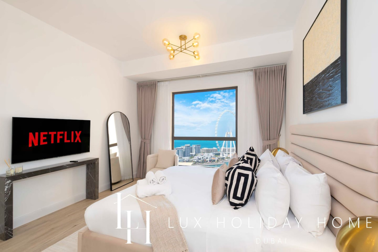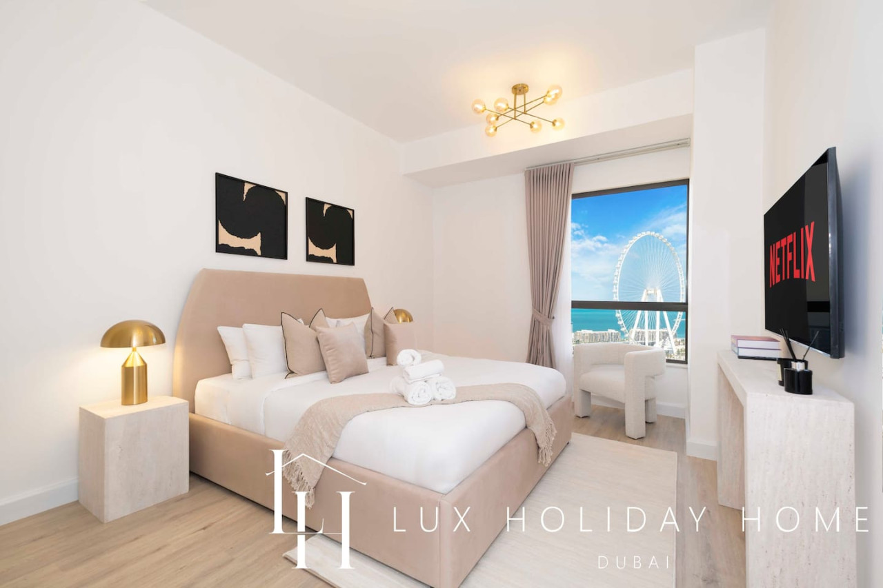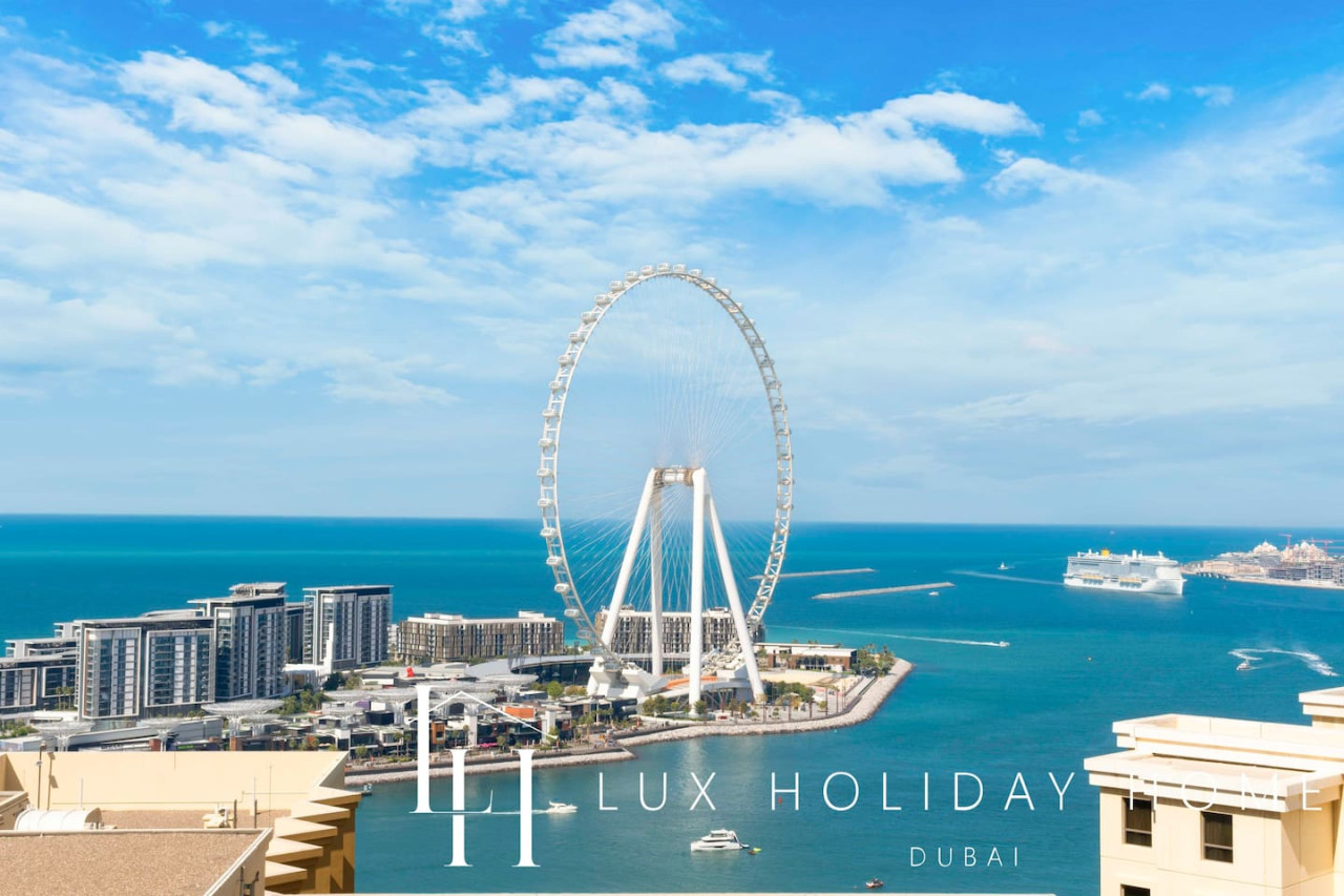 Welcome to LUX | The Dubai Eye Sea View Suite , your ideal getaway nestled in Dubai’s iconic bustling neighborhood of JBR. Enjoy beachside living in a style and comfort, with an array of vibrant dining options, luxurious shopping and exciting entertainment, you are guaranteed to find something here for the entire family, all within walking distance. The ideal location to relax, dine and unwind. Take a look at the link for the virtual tour of the apartment - https://kuula.co/share/collection/7D57Z?logo=0&info=0&fs=1&vr=1&sd=1&initload=0&thumbs=1 - Spacious living area / dining area - Guest bathroom - 1 King bedroom with Ensuite - 1 King bedroom - Fully equipped kitchen - Balcony with a Sea View - Pool - High end gym facilities * Please be advised that the Amwaj 4 swimming pool and the Kid’s Play Area behind Amwaj 3 will be closed for maintenance from January 16 to February 16, 2026. Please use the Shams 1 Swimming Pool during this time. Thank you for your understanding. * Please be advised that renovation works will be carried out in another apartment on the same floor for approximately one month. Some noise may be experienced during the hours outlined below. Work Schedule: Monday to Friday: 9:00 AM – 1:00 PM and 3:00 PM – 5:00 PM Saturday: No noisy work Sunday: No work The Walk at Jumeirah Beach Residence (JBR) is a popular promenade where you can shop, dine and stroll by the sea. Explore a range of hotels in JBR, A trendy tourist spot. JBR is within walking distance to Dubai Marina, Bluewaters Island, Dubai Tram and Dubai Metro. Attractions include - Ain Dubai ( worlds largest observation wheel) - Dinner in the sky - Hydro watersports - Dubai Marina walk - Sky Dive Dubai - Brass Monkey - Flying Cup Dubai - Aquafun (inflatable obstacle course on JBR beach) - Xline Dubai Marina - Lotus Mega Yacht Popular nearby restaurants - The MAINE Oyster Bar & Grill - Eggspectation - Zaroob - Pavilion at The Beach - The London Project - Motorino Dubai Taxis which are available on your doorstep You can also use the the "Uber" or "Careem" app There is free parking onsite. Once you have booked and received the confirmation email, to ensure a smooth check in and meet our obligations with the Tourism authority, we kindly ask you to provide your passport details through airbnb, on whats app, or by responding to the confirmation email). Your passport will only serve the following purposes: 1- notify the building security to allow you in 2- register your stay with tourism authorities The cleaning fees mentioned in the price breakdown cover only the check out cleaning. For any additional in-stay cleaning, please reach out to us for prices and bookings. Additional Services Available: ✓ Housekeeping services ✓ Extra bed linen/towels ✓ Baby cot / baby chair ✓ Airport pickup/drop-off ✓ Grocery shopping