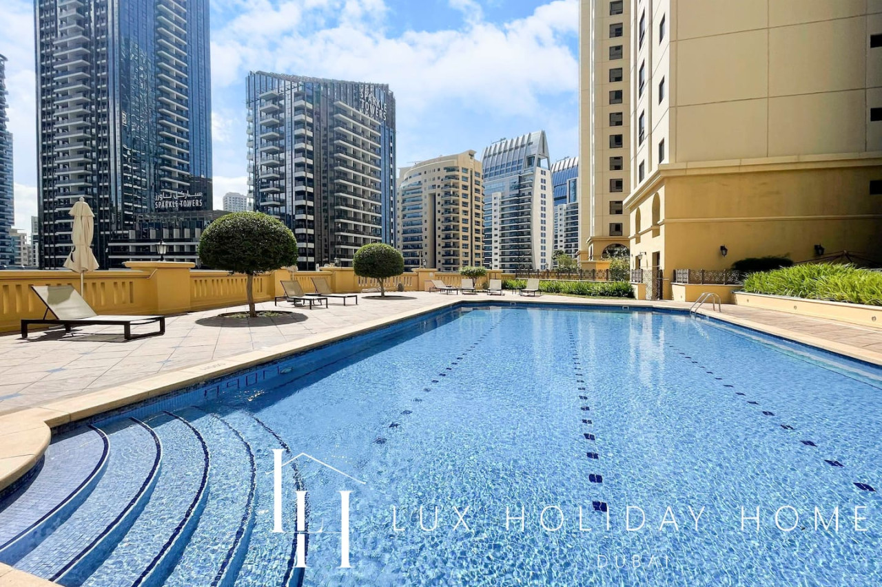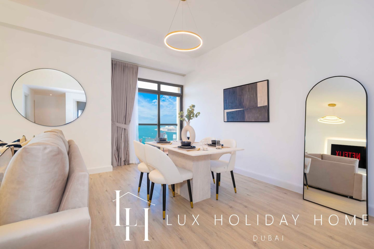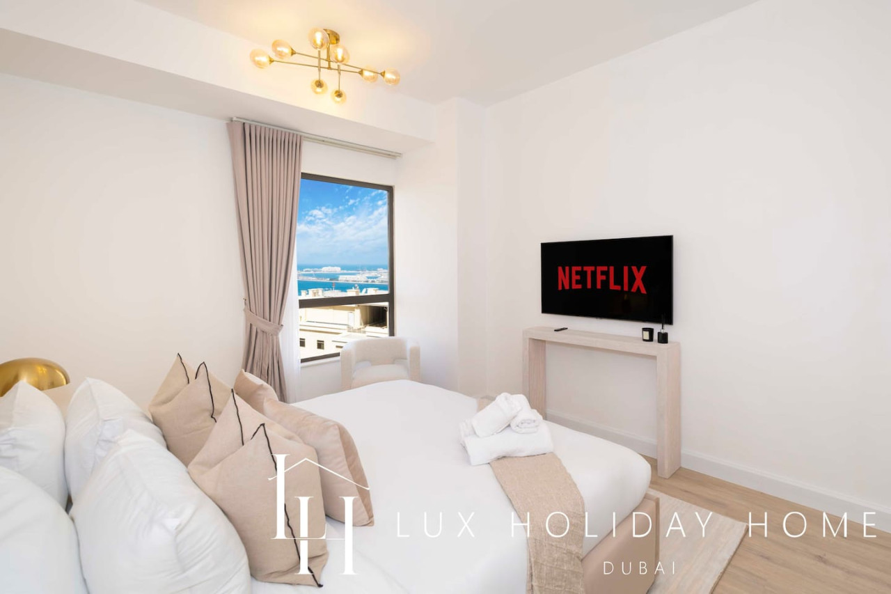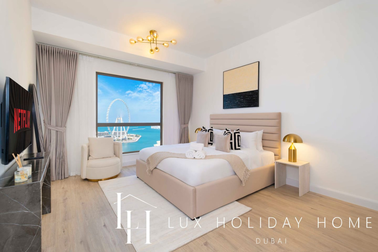 Welcome to LUX | The Dubai Eye Sea View Suite , your ideal getaway nestled in Dubai’s iconic bustling neighborhood of JBR. Enjoy beachside living in a style and comfort, with an array of vibrant dining options, luxurious shopping and exciting entertainment, you are guaranteed to find something here for the entire family, all within walking distance. The ideal location to relax, dine and unwind. Take a look at the link for the virtual tour of the apartment - https://kuula.co/share/collection/7D57Z?logo=0&info=0&fs=1&vr=1&sd=1&initload=0&thumbs=1 - Spacious living area / dining area - Guest bathroom - 1 King bedroom with Ensuite - 1 King bedroom - Fully equipped kitchen - Balcony with a Sea View - Pool - High end gym facilities * Please be advised that the Amwaj 4 swimming pool and the Kid’s Play Area behind Amwaj 3 will be closed for maintenance from January 16 to February 16, 2026. Please use the Shams 1 Swimming Pool during this time. Thank you for your understanding. * Please be advised that renovation works will be carried out in another apartment on the same floor for approximately one month. Some noise may be experienced during the hours outlined below. Work Schedule: Monday to Friday: 9:00 AM – 1:00 PM and 3:00 PM – 5:00 PM Saturday: No noisy work Sunday: No work The Walk at Jumeirah Beach Residence (JBR) is a popular promenade where you can shop, dine and stroll by the sea. Explore a range of hotels in JBR, A trendy tourist spot. JBR is within walking distance to Dubai Marina, Bluewaters Island, Dubai Tram and Dubai Metro. Attractions include - Ain Dubai ( worlds largest observation wheel) - Dinner in the sky - Hydro watersports - Dubai Marina walk - Sky Dive Dubai - Brass Monkey - Flying Cup Dubai - Aquafun (inflatable obstacle course on JBR beach) - Xline Dubai Marina - Lotus Mega Yacht Popular nearby restaurants - The MAINE Oyster Bar & Grill - Eggspectation - Zaroob - Pavilion at The Beach - The London Project - Motorino Dubai Taxis which are available on your doorstep You can also use the the "Uber" or "Careem" app There is free parking onsite. Once you have booked and received the confirmation email, to ensure a smooth check in and meet our obligations with the Tourism authority, we kindly ask you to provide your passport details through airbnb, on whats app, or by responding to the confirmation email). Your passport will only serve the following purposes: 1- notify the building security to allow you in 2- register your stay with tourism authorities The cleaning fees mentioned in the price breakdown cover only the check out cleaning. For any additional in-stay cleaning, please reach out to us for prices and bookings. Additional Services Available: ✓ Housekeeping services ✓ Extra bed linen/towels ✓ Baby cot / baby chair ✓ Airport pickup/drop-off ✓ Grocery shopping