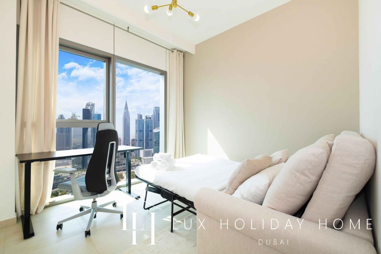 Welcome to LUX | The Burj Khalifa Downtown View Suite. Step into luxury living in downtown Dubai with this stunning apartment boasting panoramic views of the iconic Burj Khalifa and the bustling city below. With all the modern comforts and a stylish vibe, it's the perfect blend of luxury and convenience. Welcome home to your urban oasis with a view that takes your breath away. - Spacious 3 Bedroom Apartment - Master Bedroom with ensuite and separate balcony - Spacious Living area with Balcony - Fully Equipped Kitchen - Dining area with capacity of 6 - Swimming Pool and Gym facilities for residents - Children play area - Common Basketball court Note : Please be aware that there are no blackout curtains in the living room where the sofa bed is situated* Once you have booked and received the confirmation email, to ensure a smooth check in and meet our obligations with the Tourism authority, we kindly ask you to provide your passport details through airbnb, on whats app, or by responding to the confirmation email). Your passport will only serve the following purposes: 1- notify the building security to allow you in 2- register your stay with tourism authorities The cleaning fees mentioned in the price breakdown cover only the check out cleaning. For any additional in-stay cleaning, please reach out to us for prices and bookings. Additional Services Available: ✓ Housekeeping services ✓ Extra bed linen/towels ✓ Baby cot / baby chair ✓ Grocery shopping