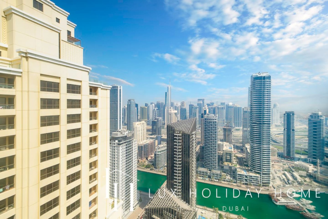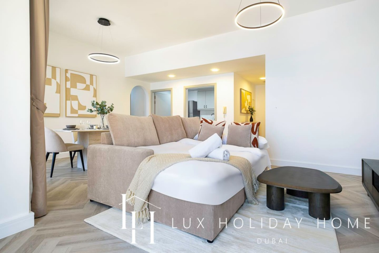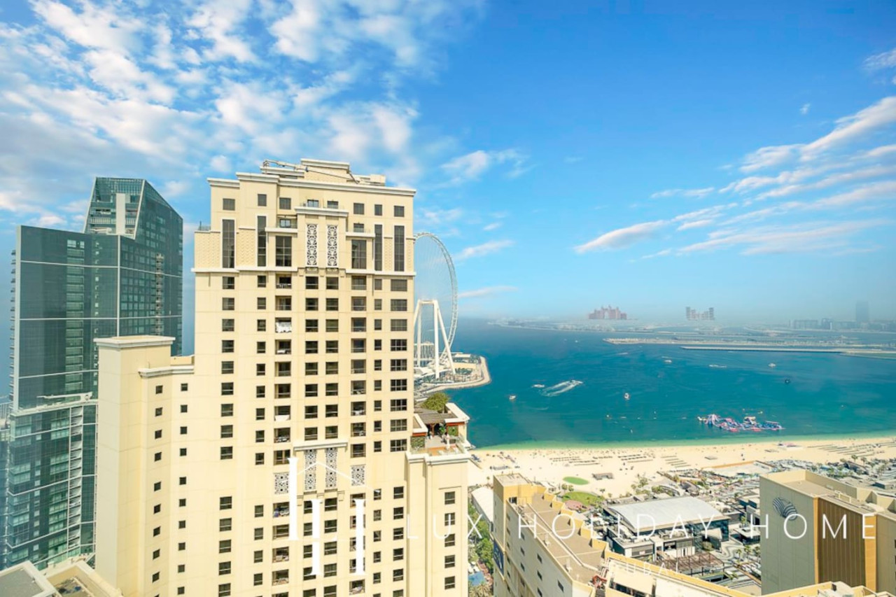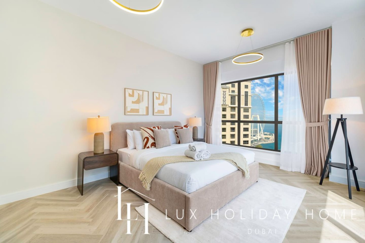 Welcome to LUX | The Premium Dubai Eye View Suite. Experience the elegance of our upgraded, stylish 2-bedroom apartment, featuring a comfortable sofa bed set in the vibrant heart of JBR. A short 3 minute walk from JBR beach, Dubai’s most famous promenade where you can shop, dine, and stroll by the sea. Enjoy free beach access with the option to indulge in paid sunbeds or watersports. Entertainment options are endless, ensuring there’s something for the whole family, all within walking distance. • Master bedroom with King bed and ensuite • Second bedroom with king bed and smart TV • 2.5 Bathrooms • 1 Covered Parking • Spacious Layout • High Floor • Marina and sea View • Bright and Spacious • Excellent Community • External Gym and Pool • Steps from Marina and the Beach • Walk through Wardrobe • Standalone Parking Next to GF Entrance Door • Large Balcony Once you have booked and received the confirmation email, to ensure a smooth check in and meet our obligations with the Tourism authority, we kindly ask you to provide your passport details through airbnb, on whats app, or by responding to the confirmation email). Your passport will only serve the following purposes: 1- notify the building security to allow you in 2- register your stay with tourism authorities The cleaning fees mentioned in the price breakdown cover only the check out cleaning. For any additional in-stay cleaning, please reach out to us for prices and bookings. Additional Services Available: ✓ Housekeeping services ✓ Extra bed linen/towels ✓ Baby cot / baby chair