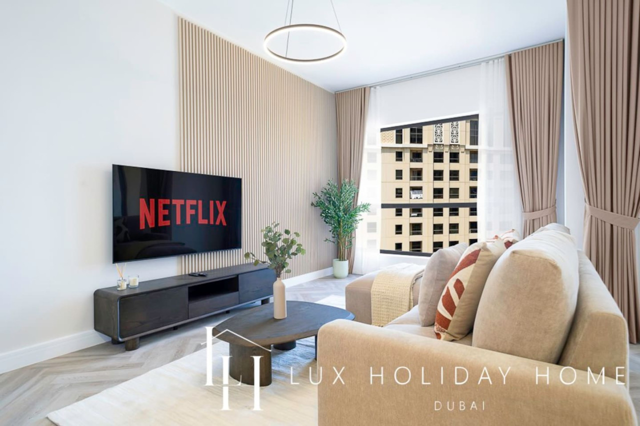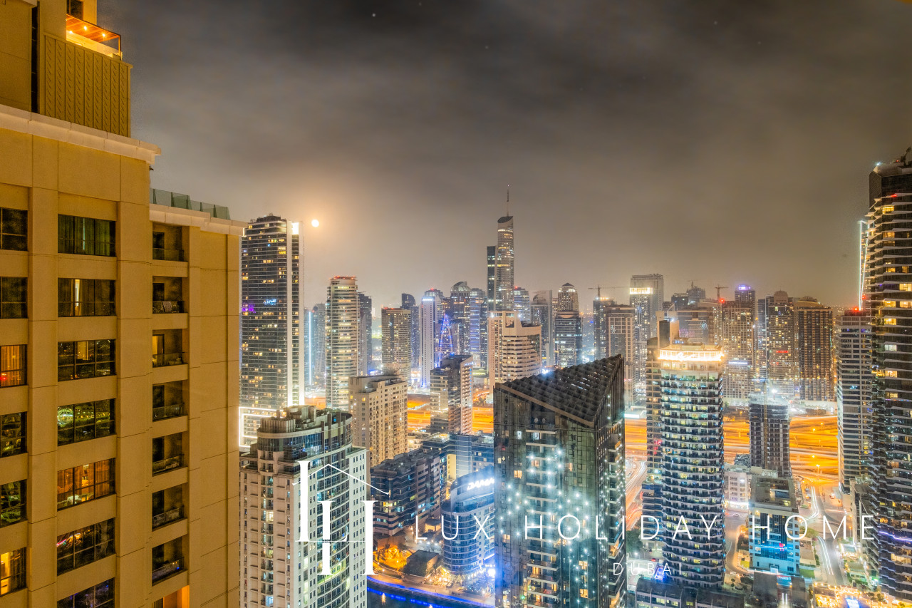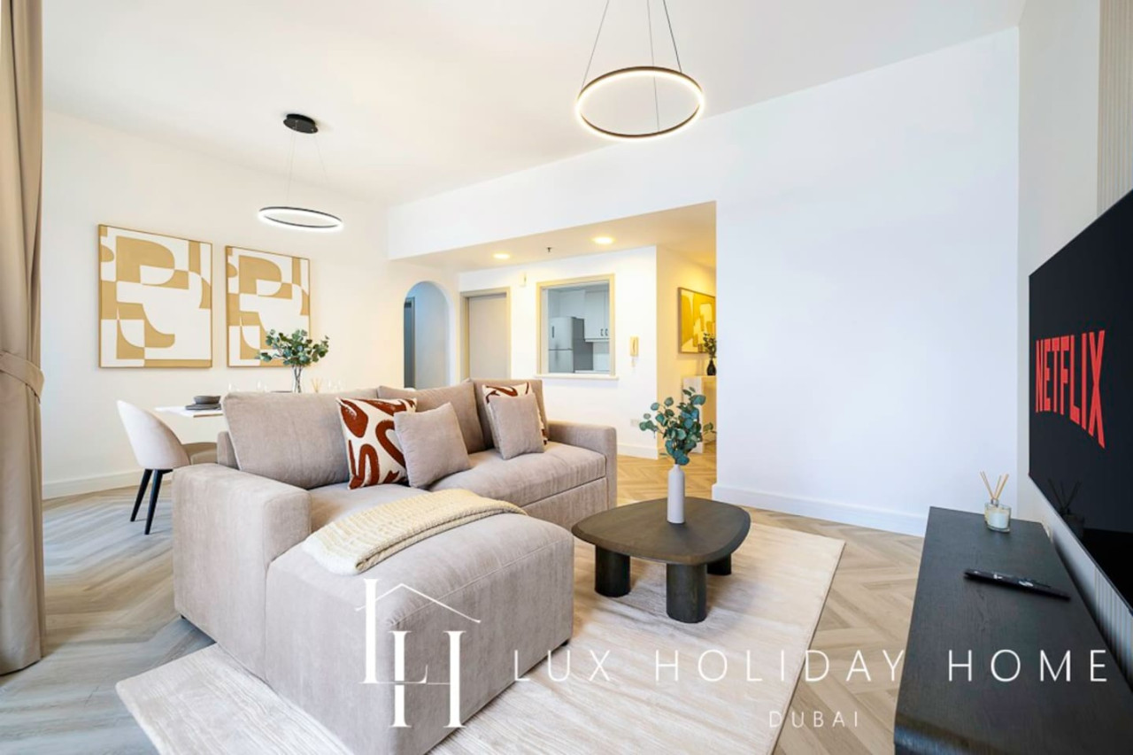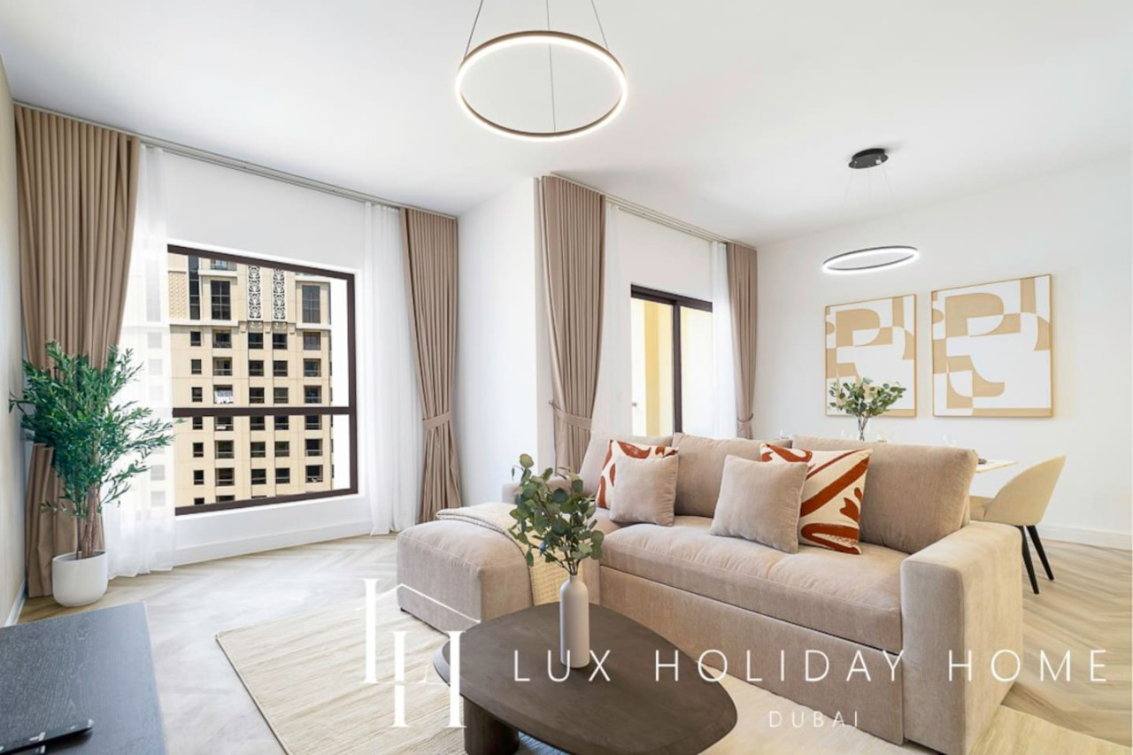 Welcome to LUX | The Premium Dubai Eye View Suite. Experience the elegance of our upgraded, stylish 2-bedroom apartment, featuring a comfortable sofa bed set in the vibrant heart of JBR. A short 3 minute walk from JBR beach, Dubai’s most famous promenade where you can shop, dine, and stroll by the sea. Enjoy free beach access with the option to indulge in paid sunbeds or watersports. Entertainment options are endless, ensuring there’s something for the whole family, all within walking distance. • Master bedroom with King bed and ensuite • Second bedroom with king bed and smart TV • 2.5 Bathrooms • 1 Covered Parking • Spacious Layout • High Floor • Marina and sea View • Bright and Spacious • Excellent Community • External Gym and Pool • Steps from Marina and the Beach • Walk through Wardrobe • Standalone Parking Next to GF Entrance Door • Large Balcony Once you have booked and received the confirmation email, to ensure a smooth check in and meet our obligations with the Tourism authority, we kindly ask you to provide your passport details through airbnb, on whats app, or by responding to the confirmation email). Your passport will only serve the following purposes: 1- notify the building security to allow you in 2- register your stay with tourism authorities The cleaning fees mentioned in the price breakdown cover only the check out cleaning. For any additional in-stay cleaning, please reach out to us for prices and bookings. Additional Services Available: ✓ Housekeeping services ✓ Extra bed linen/towels ✓ Baby cot / baby chair
