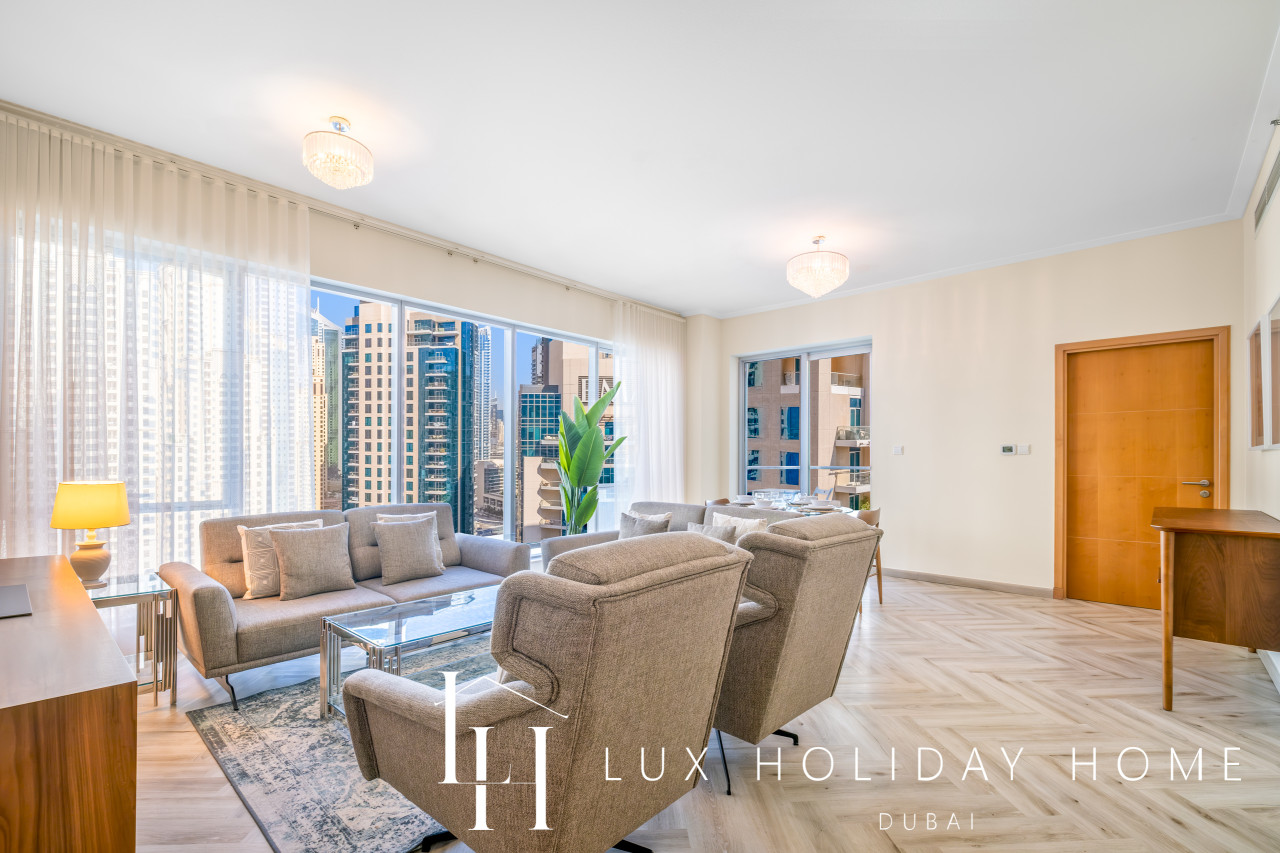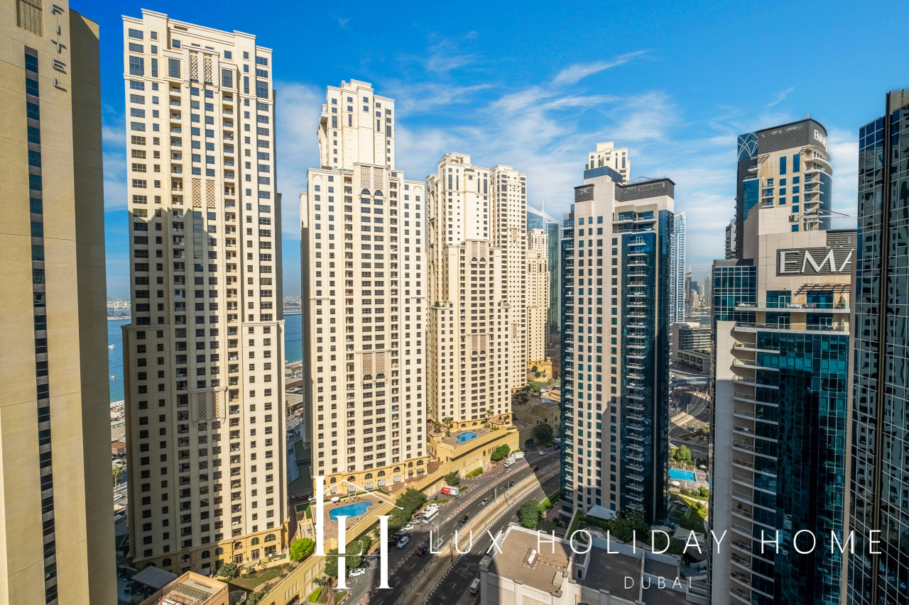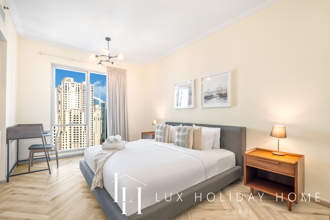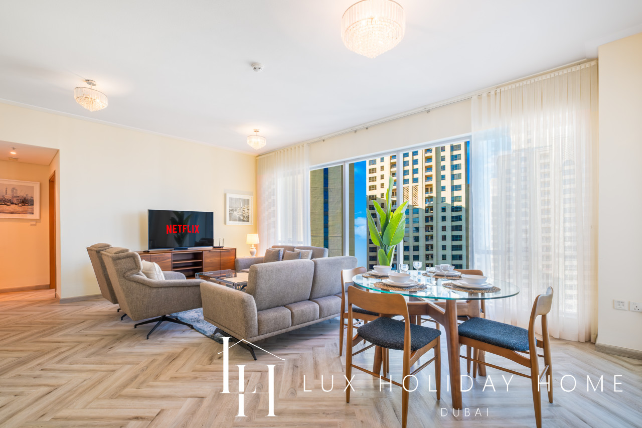 Welcome to LUX | The Shemara Marina View Suite. A newly furnished 2-bedroom apartment in Shemara Tower, Marina Promenade with direct access to Marina Walk and JBR Beach. Bluewaters Island is situated within walking distance. The Jumeriah Beach tram stop is directly outside the tower. Enjoy an array restaurants, cafes, entertainment, mini golf, jet skiing or beach clubs! The Space : * Fully furnished 2 Bedroom apartment * Full Marina view * Spacious living room with flat TV * Fully equipped kitchen * Free parking in premises * Guest bathroom * Gym, Swimming pool facilities for residents In the heart of Dubai Marina, next to JBR and The Beach, easy access to Marina Walk/Marina promenade! A highly demanded area in Dubai, with the most advanced infrastructure including metro, tram, taxi, sea ferry, sea tram, sea taxi, yacht clubs, beaches, cafes & restaurants, bars & clubs. All means of transport is available in the area, such as taxi, metro, marina tram, ferry, sea taxi, etc. TOP 10 Dubai Marina Must Do's! Yacht Tour with Breakfast or BBQ 1. Embark on a cruise around Dubai to see its highlights from the water. Sail 2. Marina Dinner Cruise with Drinks & Live Music 3. Dubai: City Highlights from Above Helicopter Tour 4. Dubai Speedboat Tour: Marina, Atlantis, Palm & Burj Al Arab 5. Dubai: Helicopter Flight from The Palm to The Burj Khalifa 6. Dubai: 2-Hour Mega Yacht Tour with Buffet Dinner 7. Dubai: Explorer Pass - Choose 3 to 7 Attractions 8. Dubai: Hop-On Hop-Off Bus Tour - 24, 48, or 72 Hours 9. Atlantis & Burj Al Arab 3-Hour Cruise on Luxury Yacht 10. Dubai Marina: Sailing Tour with BBQ and Swimming Once you have booked and received the confirmation email, to ensure a smooth check in and meet our obligations with the Tourism authority, we kindly ask you to provide your passport details through airbnb, on whats app, or by responding to the confirmation email). Your passport will only serve the following purposes: 1- notify the building security to allow you in 2- register your stay with tourism authorities The cleaning fees mentioned in the price breakdown cover only the check out cleaning. For any additional in-stay cleaning, please reach out to us for prices and bookings. Additional Services Available: ✓ Housekeeping services ✓ Extra bed linen/towels ✓ Baby cot / baby chair ✓ Grocery shopping